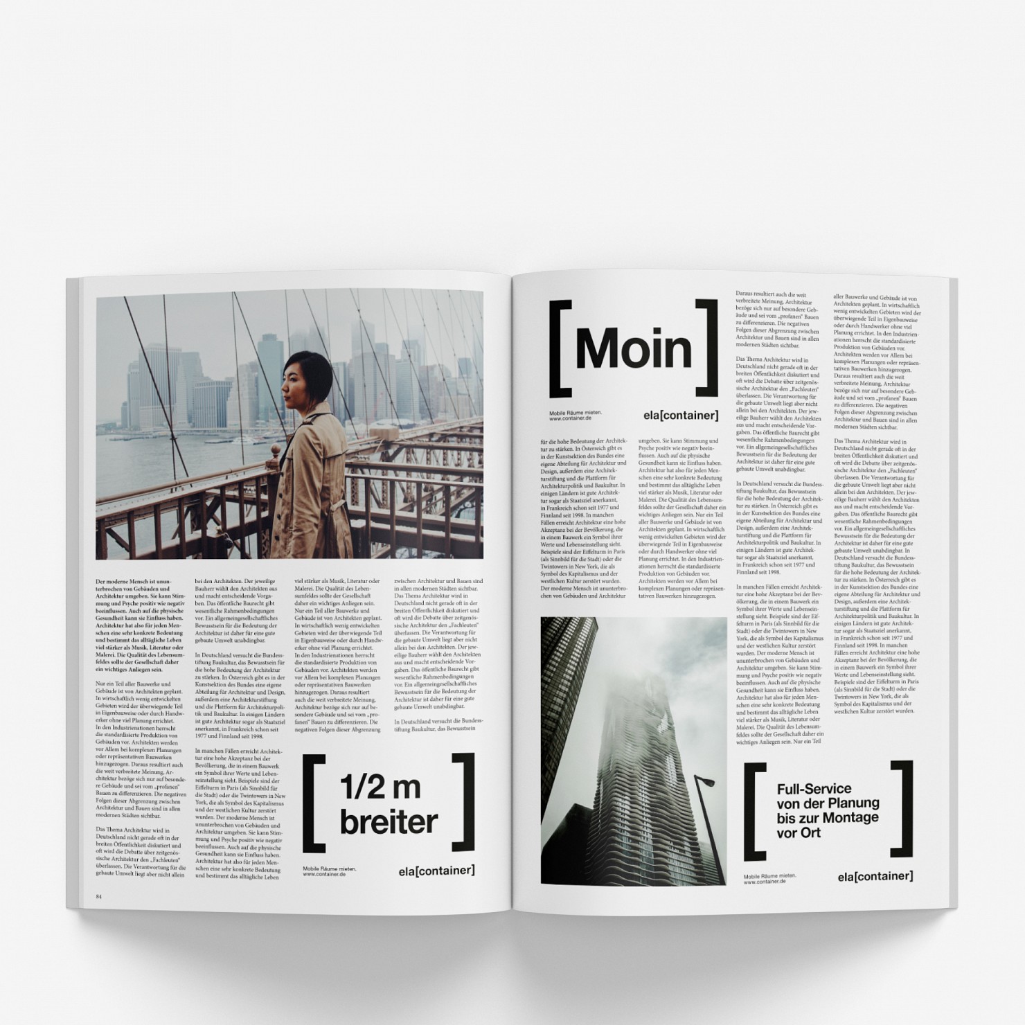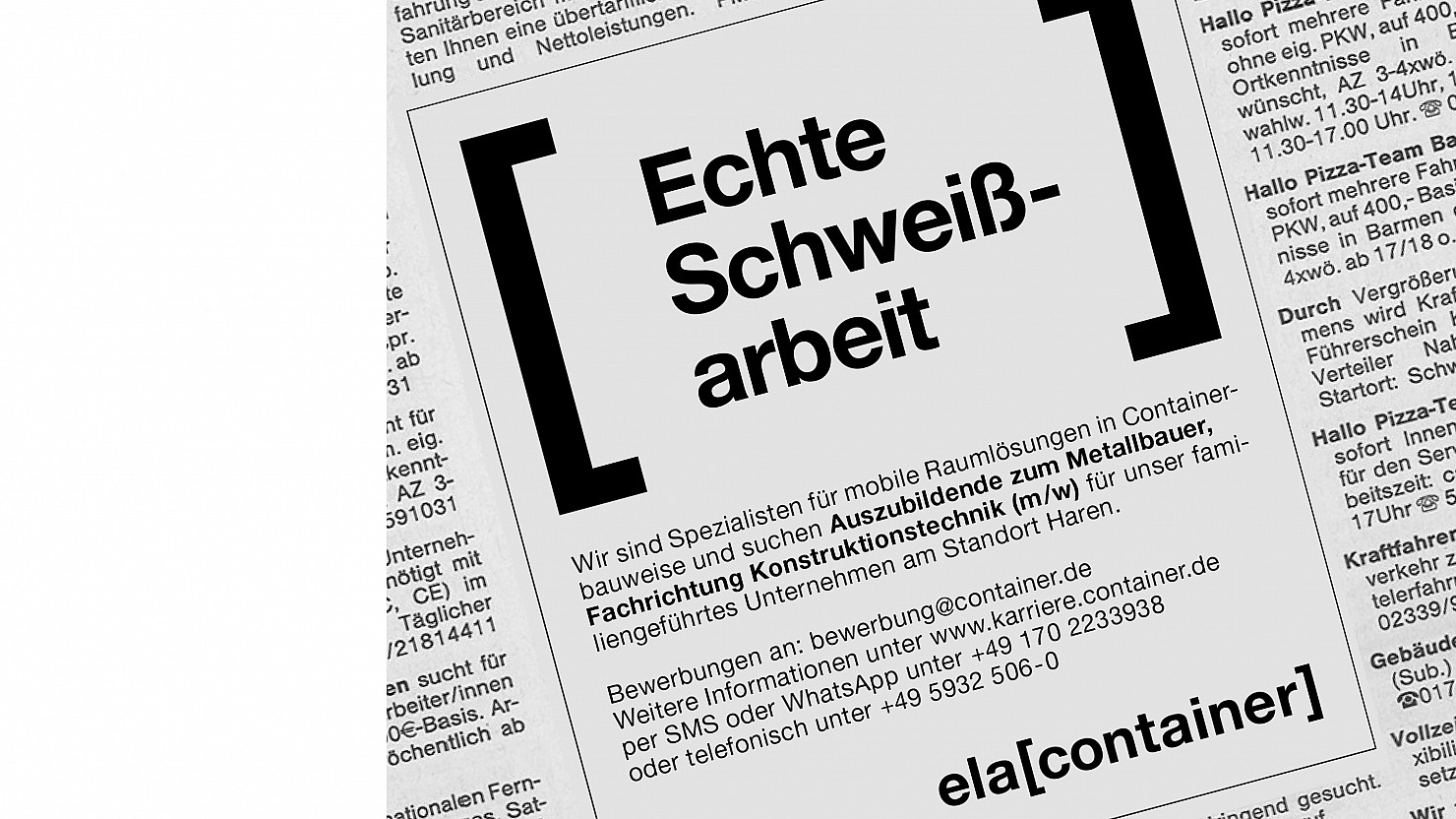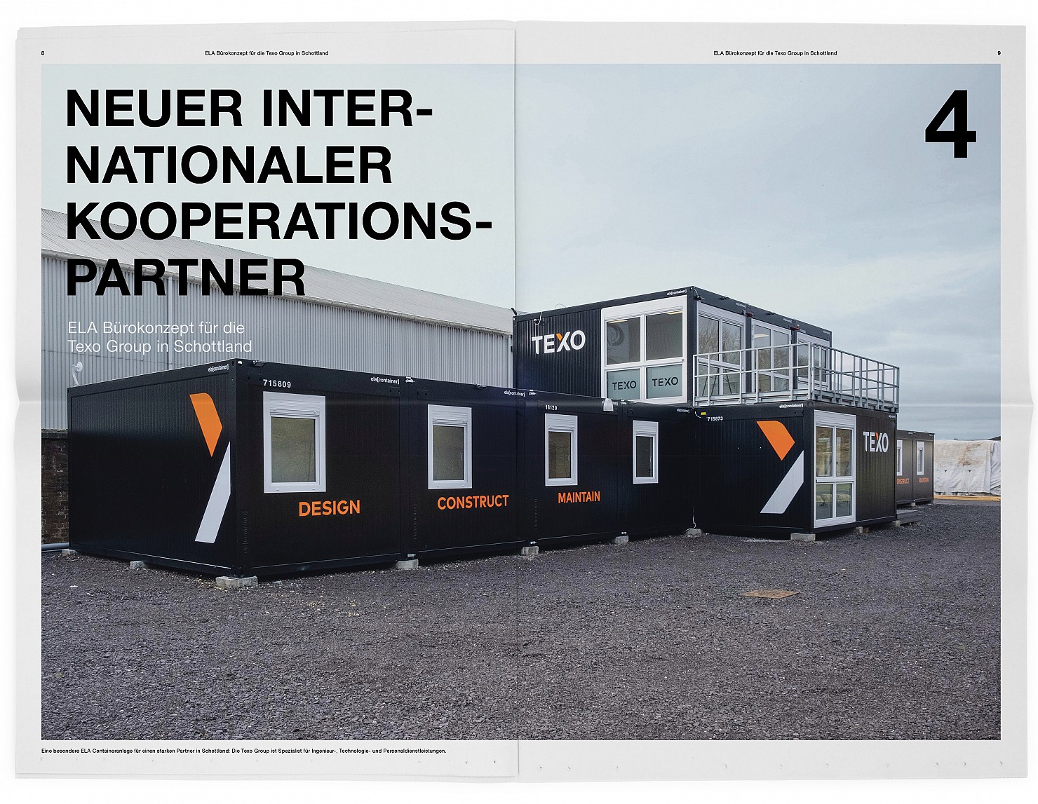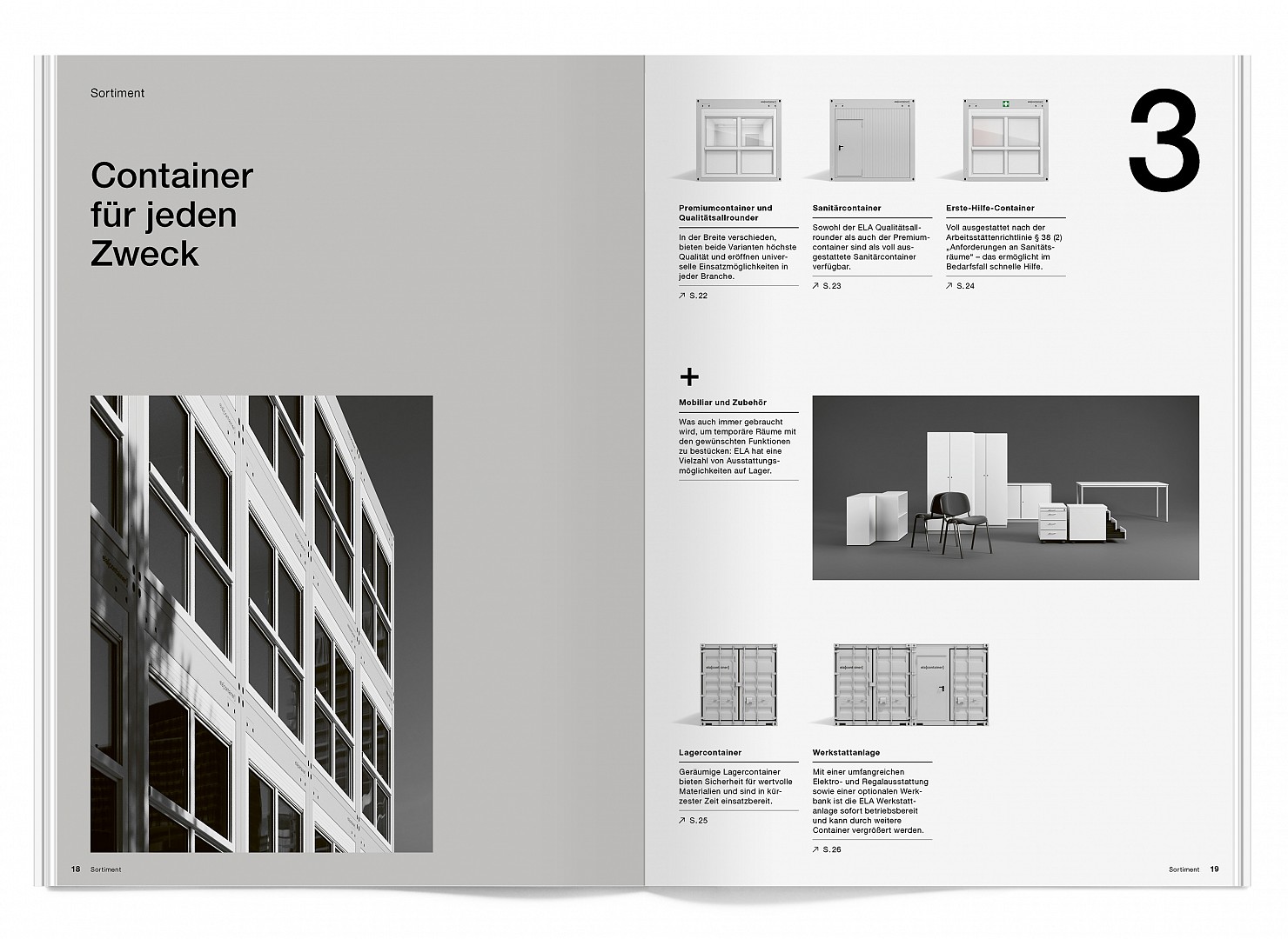 2012 beauftragte uns ELA Container, einer der führenden internationalen Produzenten und Dienstleister von mobilen Raumlösungen in Containerbauweise mit der Entwicklung einer neuen visuellen Identität. Seitdem arbeiten wir kontinuierlich mit dem Unternehmen zusammen an der Konzeption und Ausarbeitung der verschiedenen Medien. Mit 30.000 Containern, 850 Mitarbeitern und 15 Standorten weltweit hat sich ELA Container in Deutschland zu einem der führenden Anbieter von hochwertigen und flexiblen Raummodulen entwickelt.