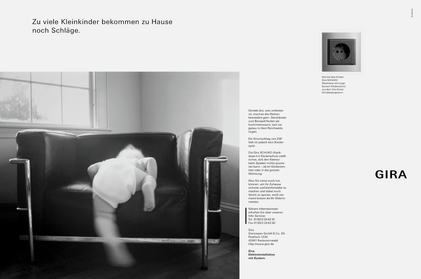 Für die Fachleute und den Fachvertrieb war Gira eine bekannte Größe. Es galt nun, die Marke und die Produkte einem breiteren Publikum bekannt zu machen. Eine Imagekampagne in Publikumszeitschriften wie dem „Spiegel“ startete 1998, die die Markenbekanntheit beim Architekten und Endgebraucher nachhaltig steigerte.