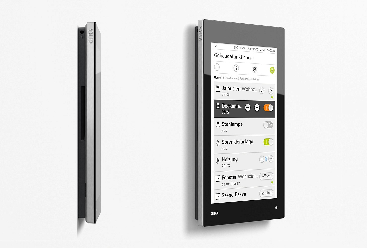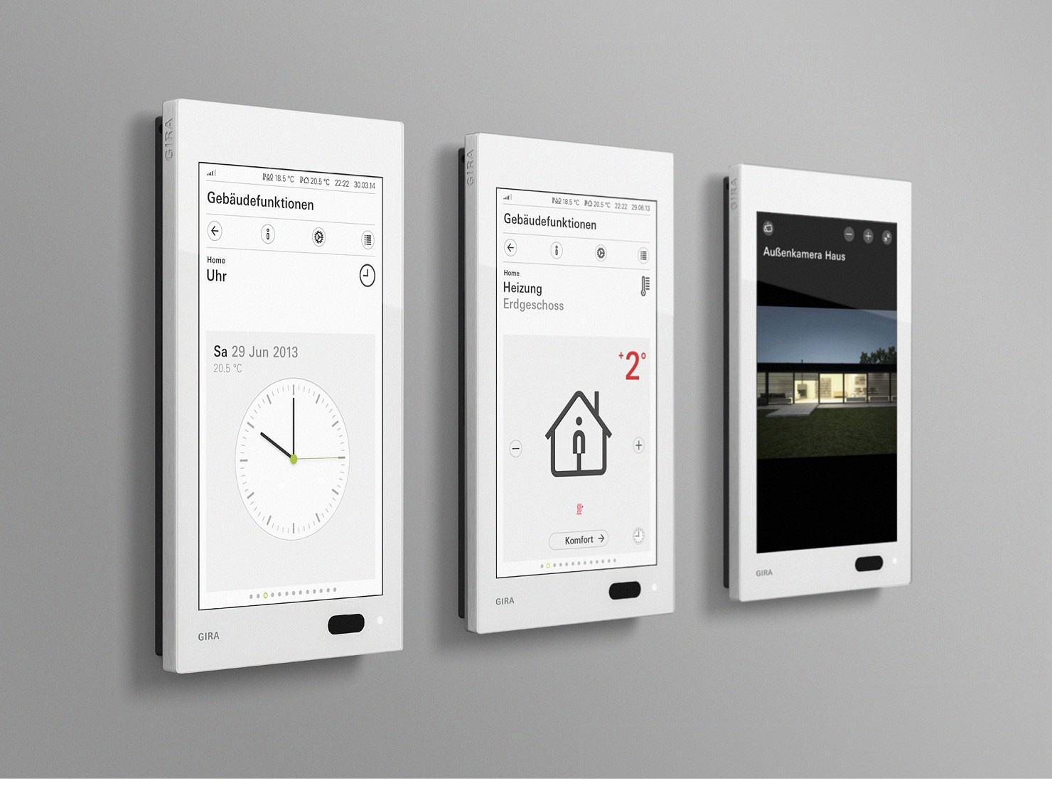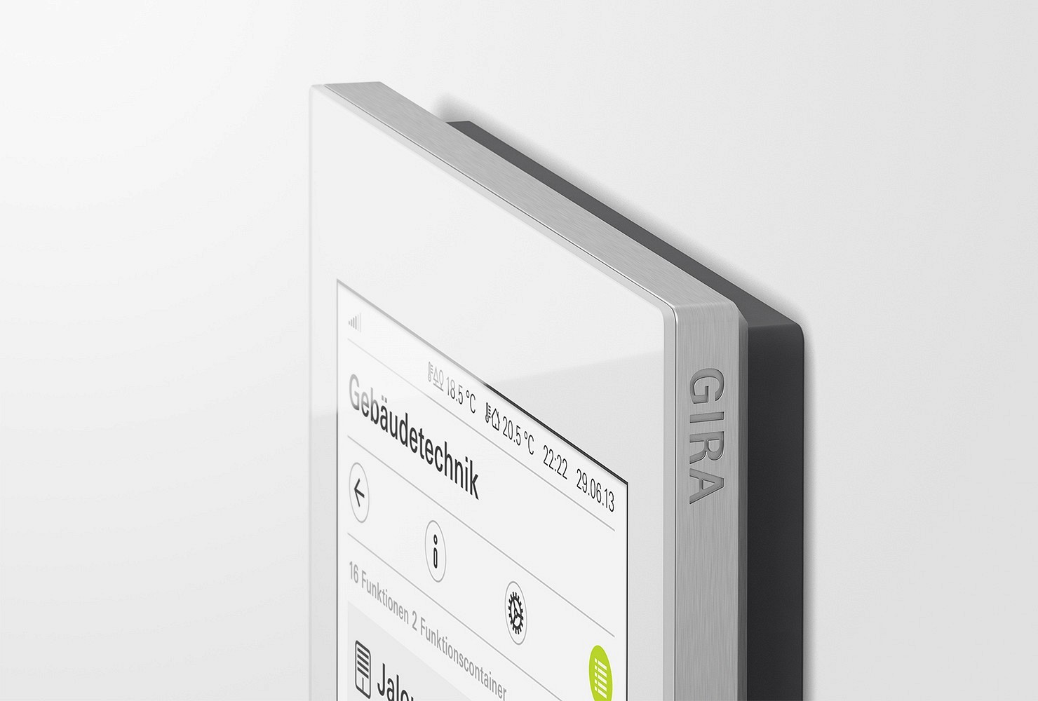 Interface-Design sollte allgemein verständliche Bedienabläufe garantieren, verbunden mit den speziellen Anforderungen eines Gerätes; so entsteht eine einfache und intuitive Benutzerführung. Am Beispiel des Gira G1 bedeutet dies, dass in Kombination mit einem sachlichen, zur Gira Identität passenden Interface-Design zentrale Unternehmenswerte wie Einfachheit, Transparenz und Wertigkeit transportiert werden.