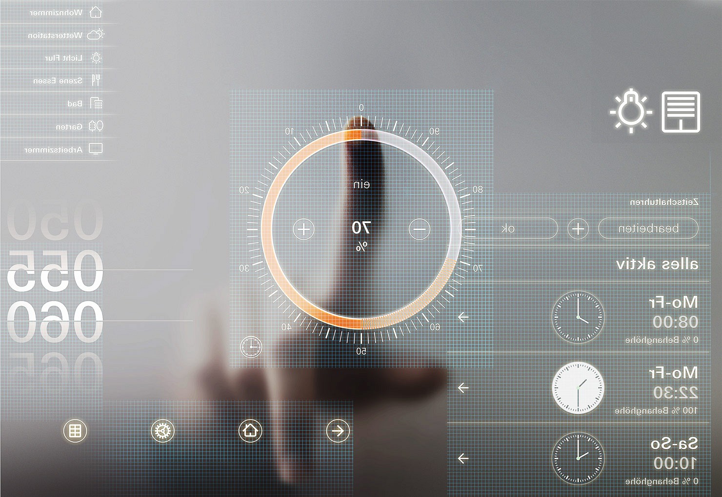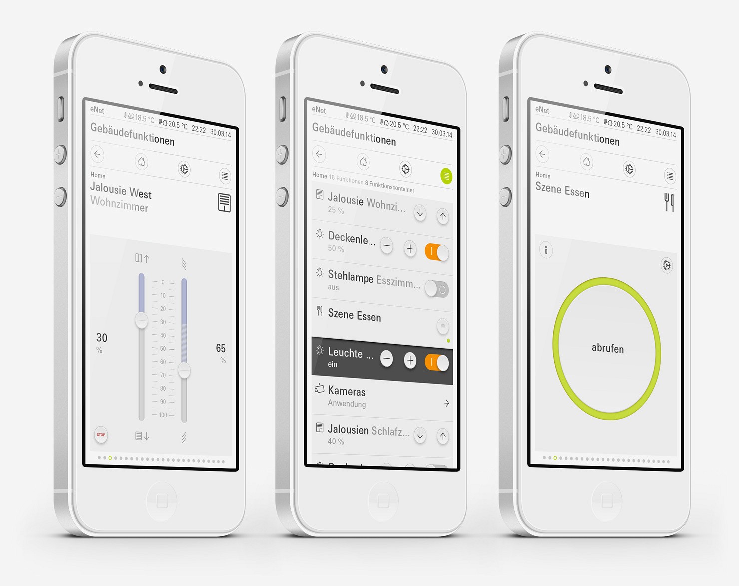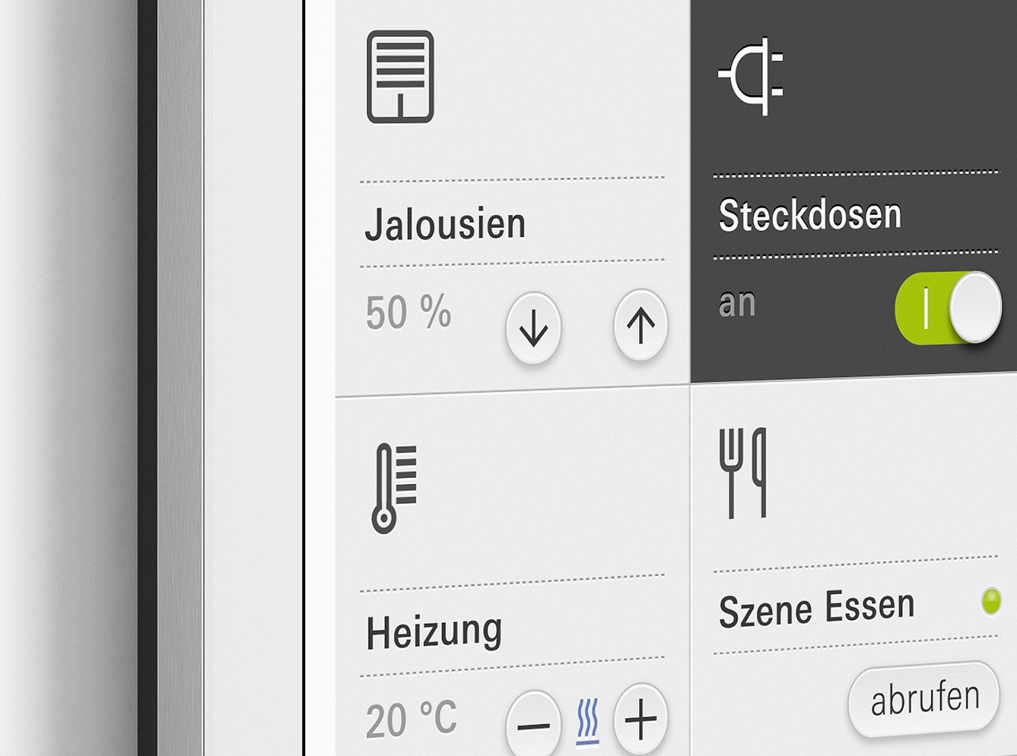 Interface-Design sollte allgemein verständliche Bedienabläufe garantieren, verbunden mit den speziellen Anforderungen eines Gerätes; so entsteht eine einfache und intuitive Benutzerführung. Am Beispiel des Gira G1 bedeutet dies, dass in Kombination mit einem sachlichen, zur Gira Identität passenden Interface-Design zentrale Unternehmenswerte wie Einfachheit, Transparenz und Wertigkeit transportiert werden.