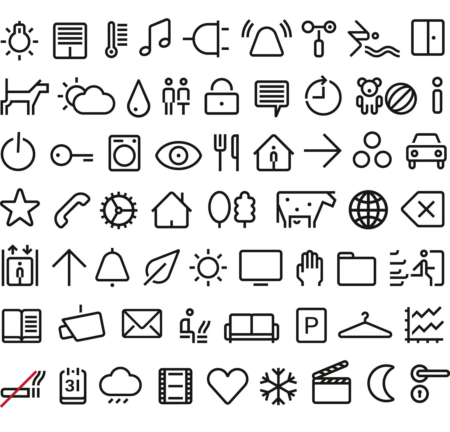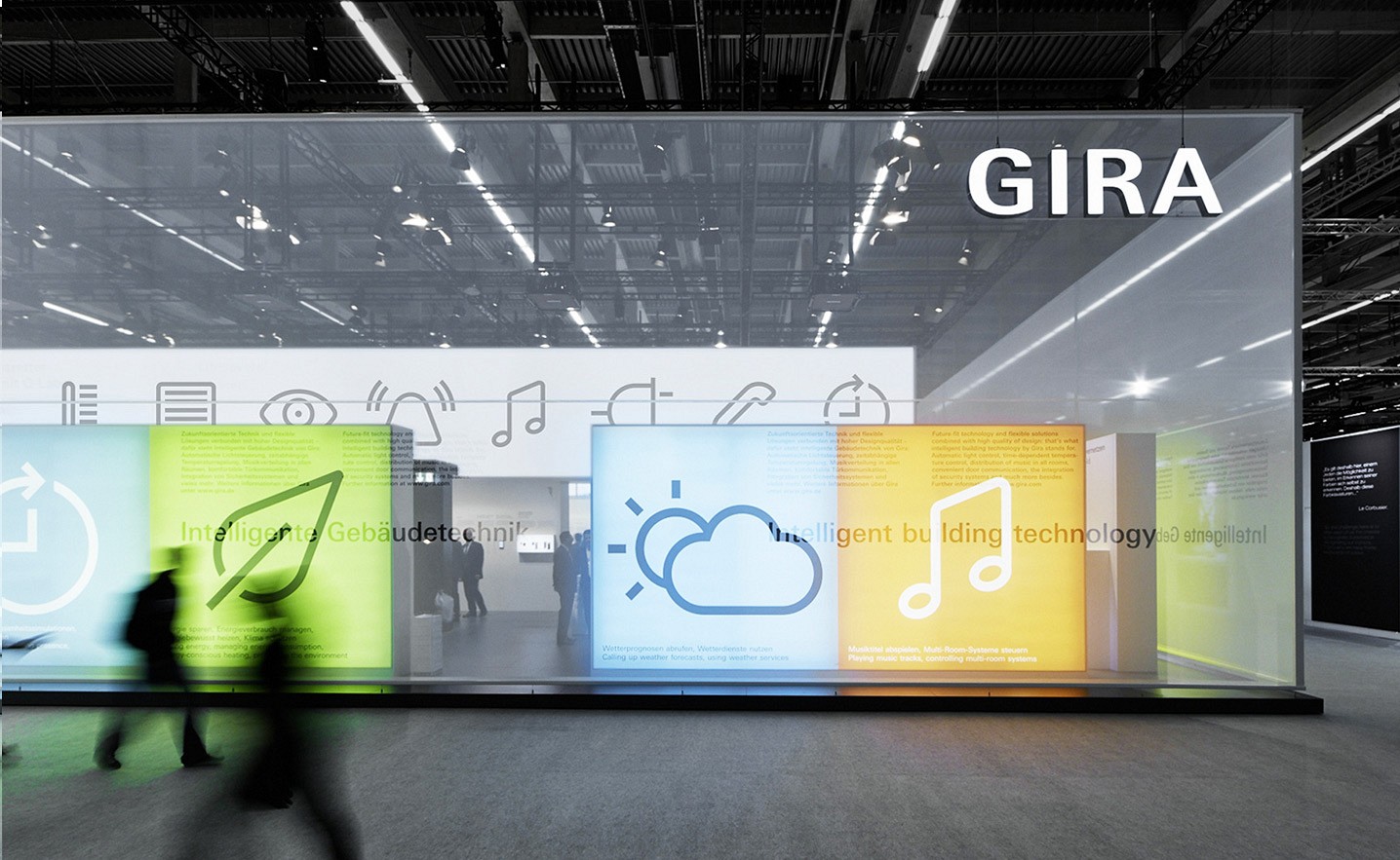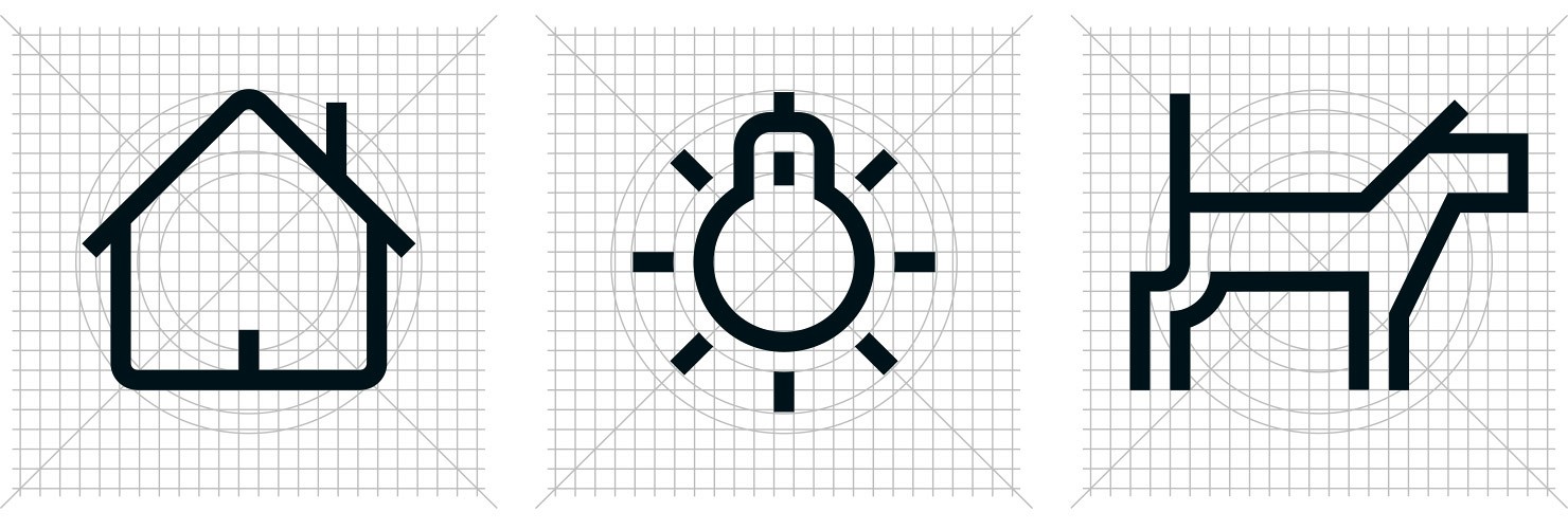 Die Gira Zeichen basieren auf einem einheitlichen Gestaltungsraster, sind einfach erfassbar und auch stark verkleinert gut erkennbar. Das Gira Icon-System funktioniert nicht nur im Interface, sondern wird auch bei Orientierungssystemen und als Mini-Icons bei der Produkt-Kennzeichnung verwendet.