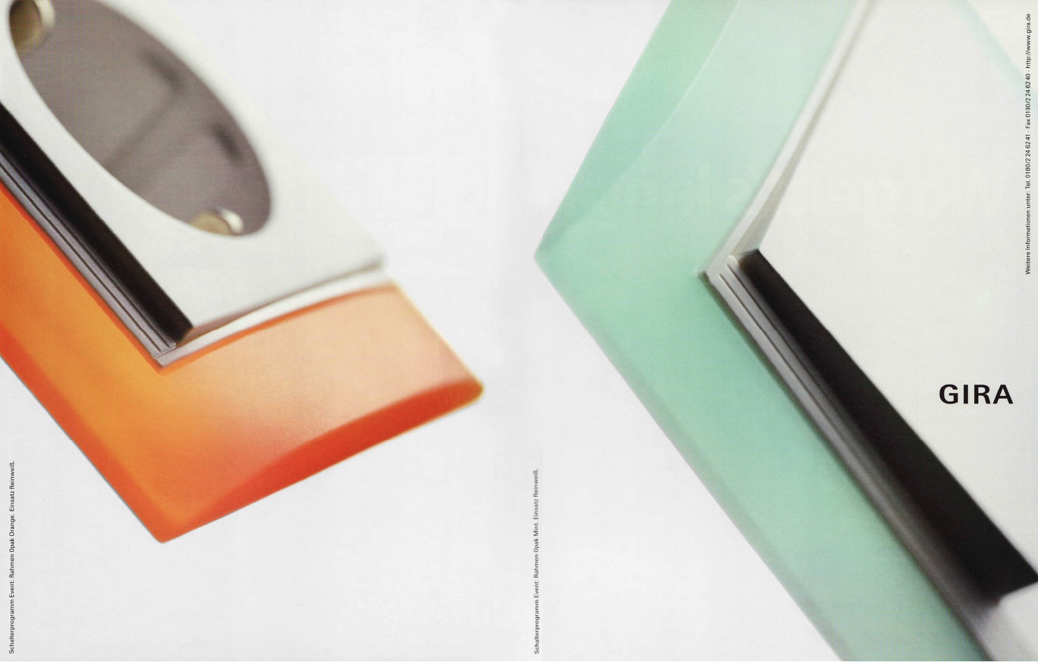 In den ersten Jahren der Zusammenarbeit hatte noch das zweiteilige Gira Logo Bestand. Das Firmenzeichen repräsentierte Gira seit den 60er-Jahren – für Kunden und Mitarbeiter des Unternehmens also seit über 20 Jahren eine vertraute Erscheinung, die wir auch erst einmal nicht anrührten. Unsere Arbeit für ein neues visuelles Erscheinungsbild führte 1992 zur Einführung des neuen Gira Markenzeichens. Das Corporate Design entwickelte sich bedingt durch neue Anforderungen und Medien ständig weiter.