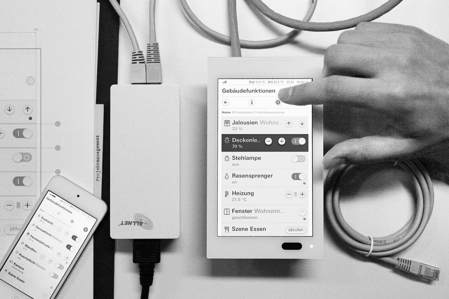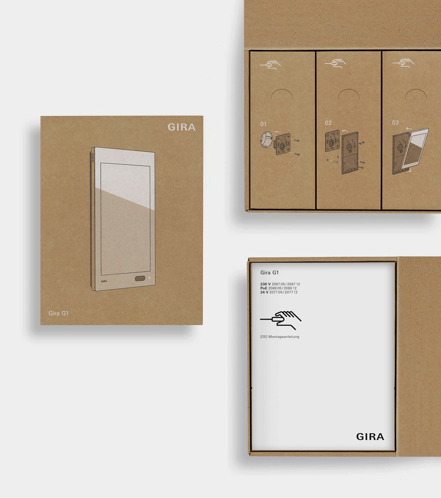 Im Rahmen eines umfassenden Corporate Design Prozesses betreuen wir Projekte ganzheitlich von der Produktidee bis hin zur Markteinführung. Beispielhaft hierfür steht die Entwicklung des Gira G1, einem Bedienterminal zur Steuerung des Smart Homes. Hierfür haben wir folgende Leistungen erbracht: Produktkonzeption und Produktdesign, User-Experience- und Interface-Design, Entwicklung eines Iconsystems, Verpackungsdesign, Entwurf der Betriebsanleitung sowie Konzeption und Gestaltung sämtlicher Kommunikations-Maßnahmen wie TV-Spots, Broschüren und Anzeigen.