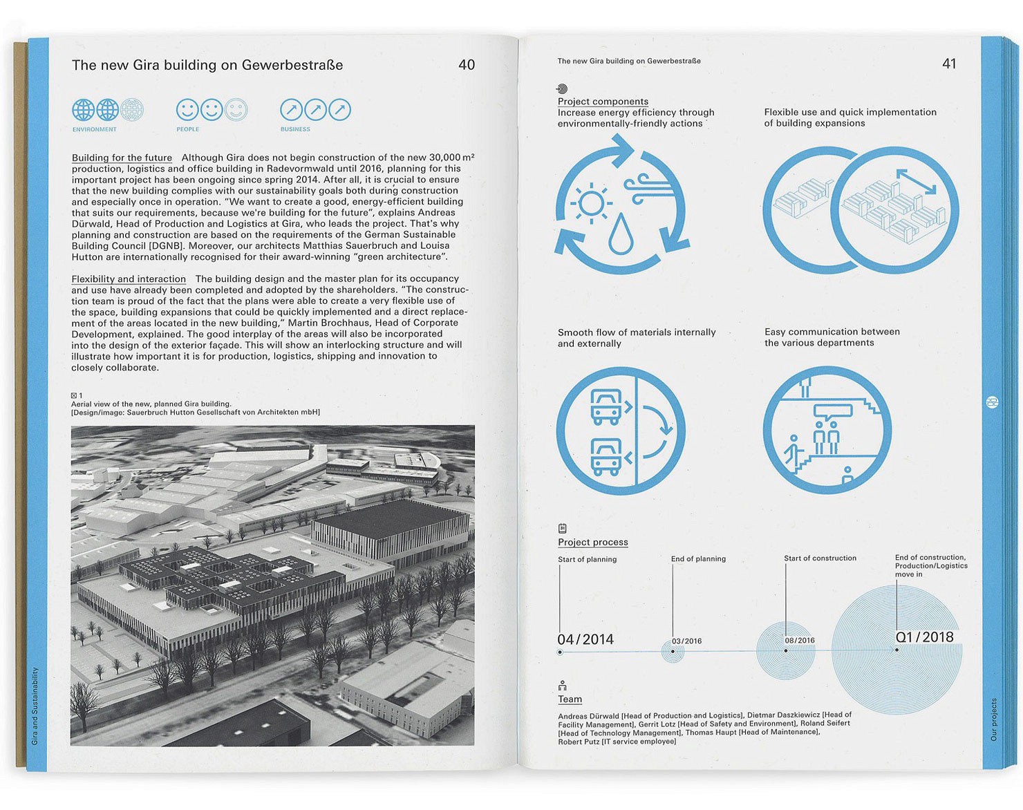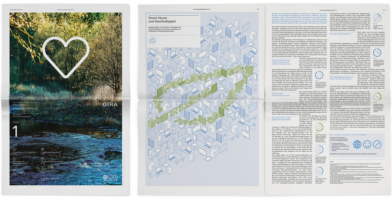 Wofür steht ein Unternehmen als Arbeitgeber? Werden Produkte und Dienstleistungen unter nachhaltigen Kriterien hergestellt und angeboten? Wie sehen die internen Entwicklungs- und Fertigungsprozesse aus? Viele Fragen auf die Unternehmen heutzutage Antworten geben müssen, z. B. um Bewerber aktiv auf sich aufmerksam zu machen, Kunden zu akquirieren oder das Image der Marke abseits der Produktkommunikation zu stärken. Im Bereich der Gira Unternehmenskommunikation betreuten wir vielseitige Projekte von der Employer-Strategie, über die Nachhaltigkeits-Kommunikation bis zu dem Erscheinungsbild für das Gira Geschäftsfeld Kunststofftechnik.